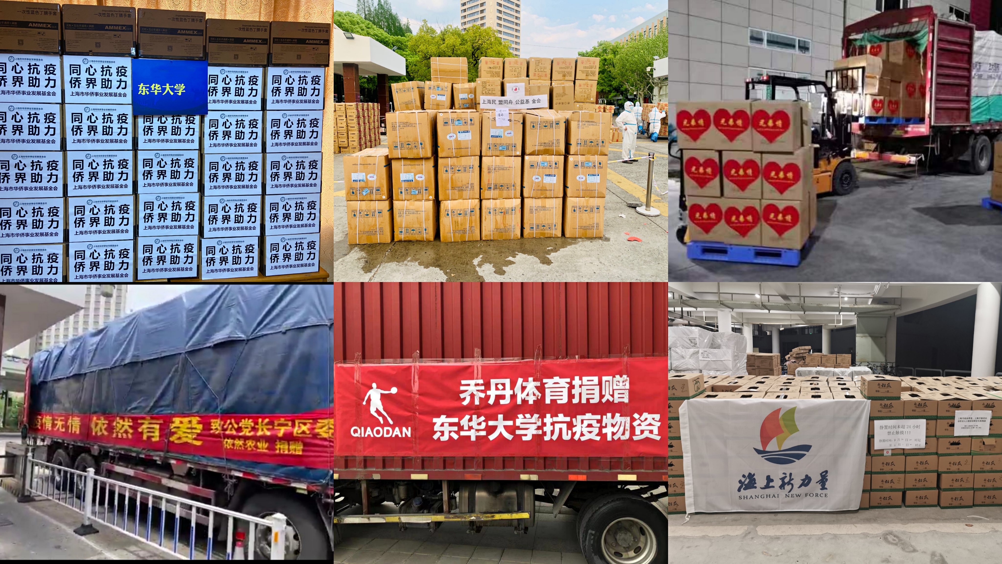 (学校统一战线联络社会各界组织、企业、爱心人士和校友捐赠的物资纷纷抵达校园)